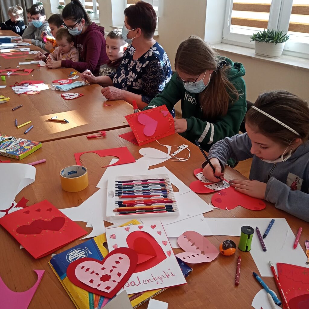 W Młodowie na uczestników czekały bajkowe skrzaty, a w Opace odbyły się zajęcia rękodzielnicze. Panie z Klubu Seniora pokazały dzieciom jak z kolorowej bibuły zrobić kwiaty. Z kolei w Dąbrowie i Bałajach najmłodsi mieli pierwsze przymiarki do Balu Karnawałowego. W czasie zabawy nie zapomniano o Dniu Zakochanych. O historii tego święta rozmawiano w Wólce Krowickiej. Wykonywano tam również kartki walentynkowe. Liściki i czerwone serca pojawiły się również w Tymcach, Załużu, Dąbrowie, Mokrzycy, a także w Baszni Górnej i Dolnej. Dzieci w piątek (18.02) wyjechały także do Rzeszowa, by spędzić czas w kinie oraz FlyParku.