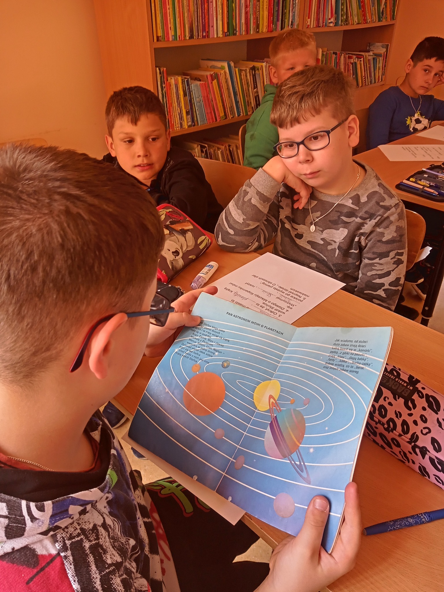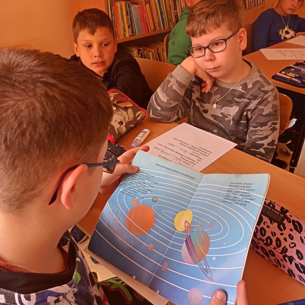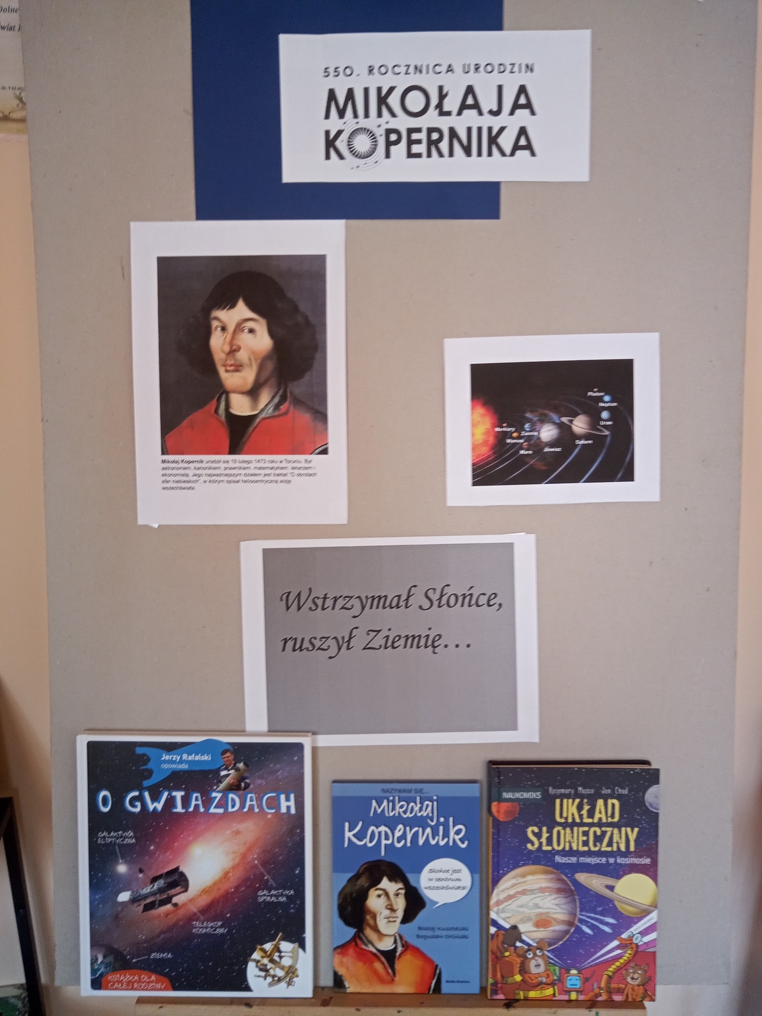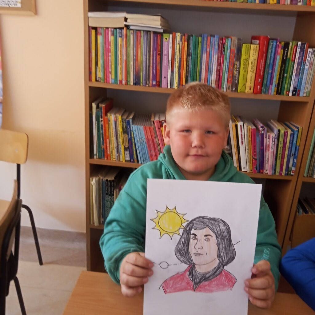 Gościliśmy uczniów klasy 3 z wychowawczynią panią Elżbietą Kanią – Sojka z Zespołu Szkolno-Przedszkolnego w Lisich Jamach. Podczas spotkania dzieci obejrzały krótki film o Mikołaju Koperniku, a dla utrwalenia informacji o wybitnym astronomie i układzie słonecznym został rozwiązany quiz, a także powstał wizerunek Mikołaja Kopernika. Dzieci bez problemu poradziły sobie z zadaniem. Cieszymy się bardzo i jesteśmy dumni, że uczniowie posiadają dużą wiedzę na temat astronomii, kosmosu i układu słonecznego. Dla czytelników chcących pogłębić wiedzę na temat Mikołaja Kopernika oraz kosmosu w Bibliotece została przygotowana wystawka książek. Zapraszamy do lektury.