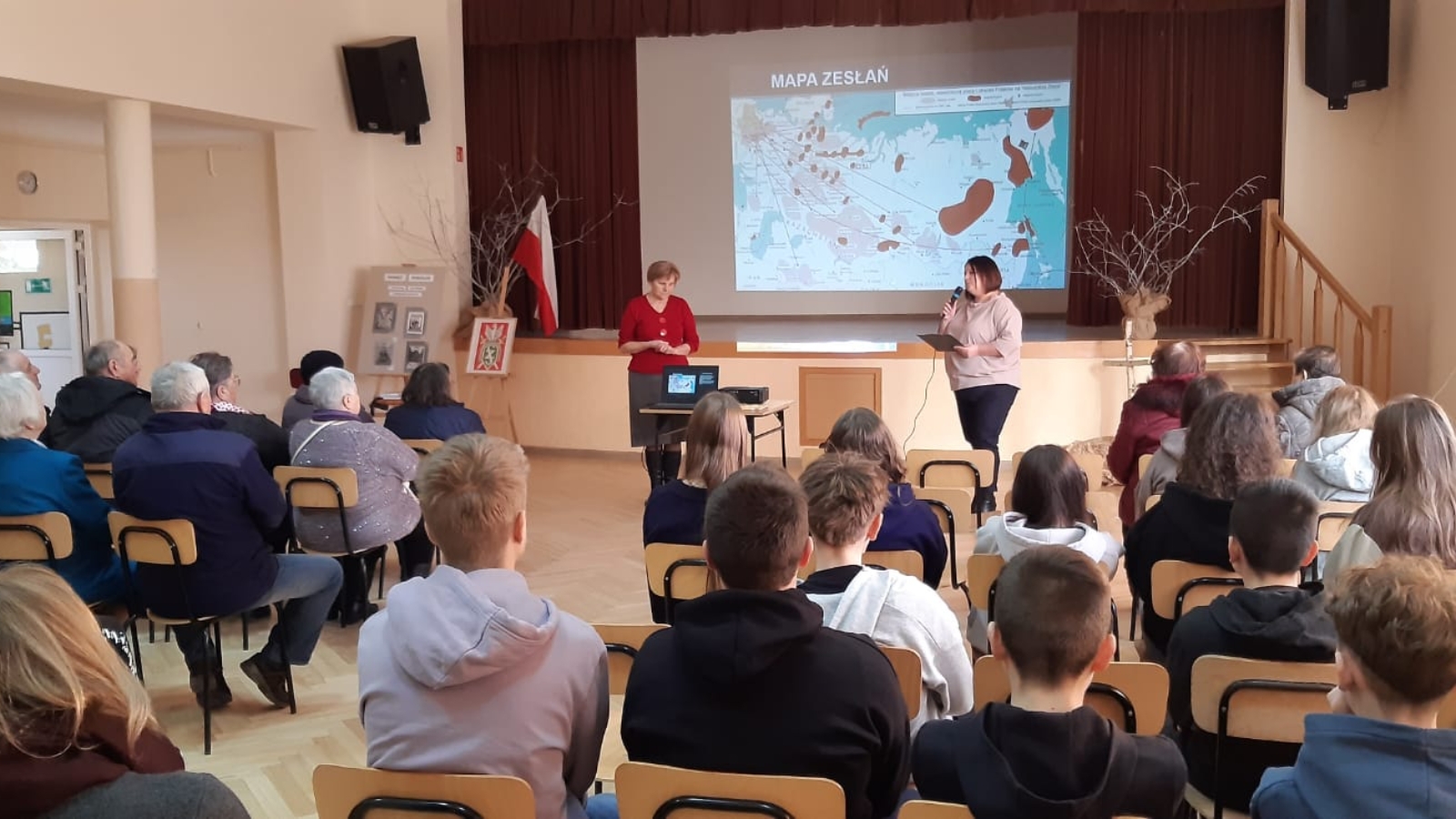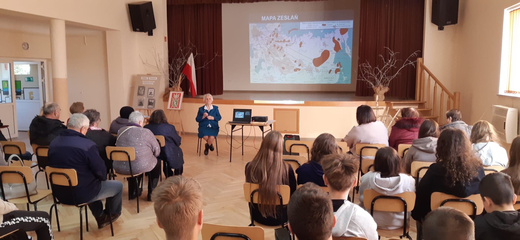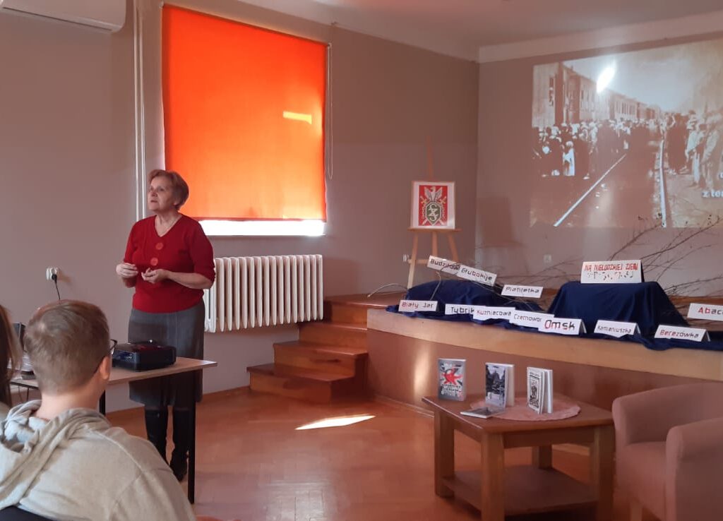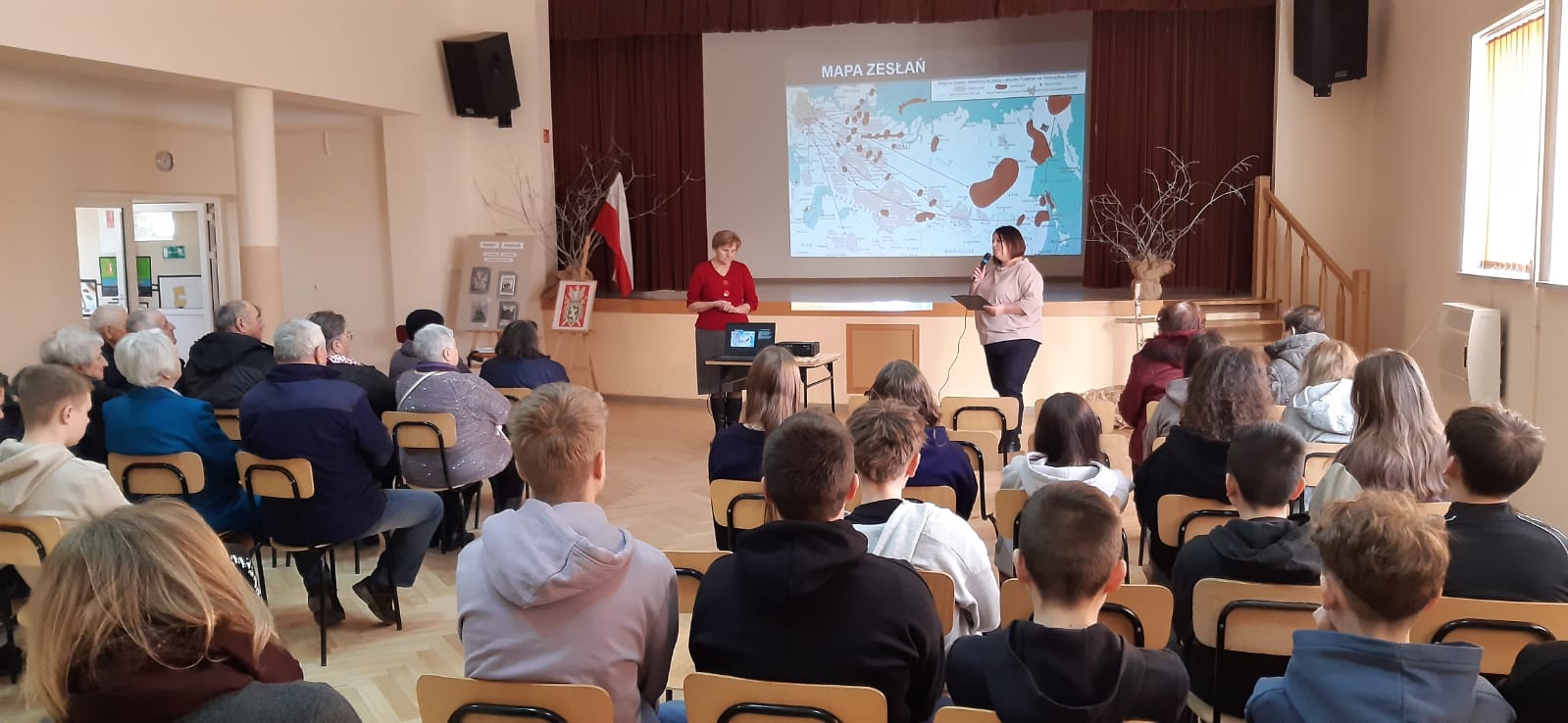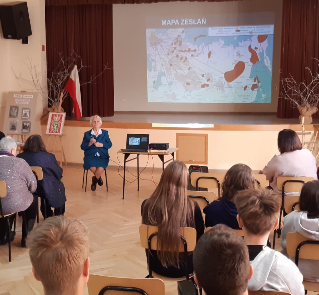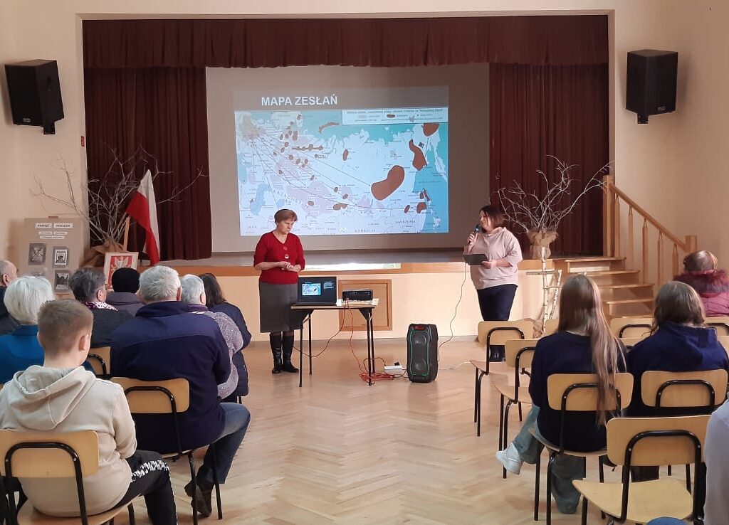 Gośćmi wydarzenia były Barbara Janczura – córka Sybiraków i wnuczka żołnierza Armii Andersa, Wojciecha Mielnika – oraz Teresa Mielnik, która jako 6-letnia dziewczynka doświadczyła wywózki na Sybir. W spotkaniu wzięła udział młodzież szkolna wraz z nauczycielami oraz członkowie Klubu Seniora. Wszyscy z ogromną uwagą wysłuchali opowieści Pani Barbary, która przybliżyła losy swojej rodziny – prawdziwych patriotów, którzy pomimo cierpień i tęsknoty, nigdy nie stracili nadziei na powrót do Ojczyzny. To właśnie z potrzeby serca Pani Barbara postanowiła spisać wspomnienia i wiersze upamiętniające te bolesne doświadczenia. Wśród jej publikacji znajdują się m.in.: Ponury Cień Syberii, Cierniowym szlakiem, Z piekła Kołymy do Armii Andersa, Sybiracy, Zobowiązanie. Wszystkie te pozycje dostępne są w gminnych bibliotekach.