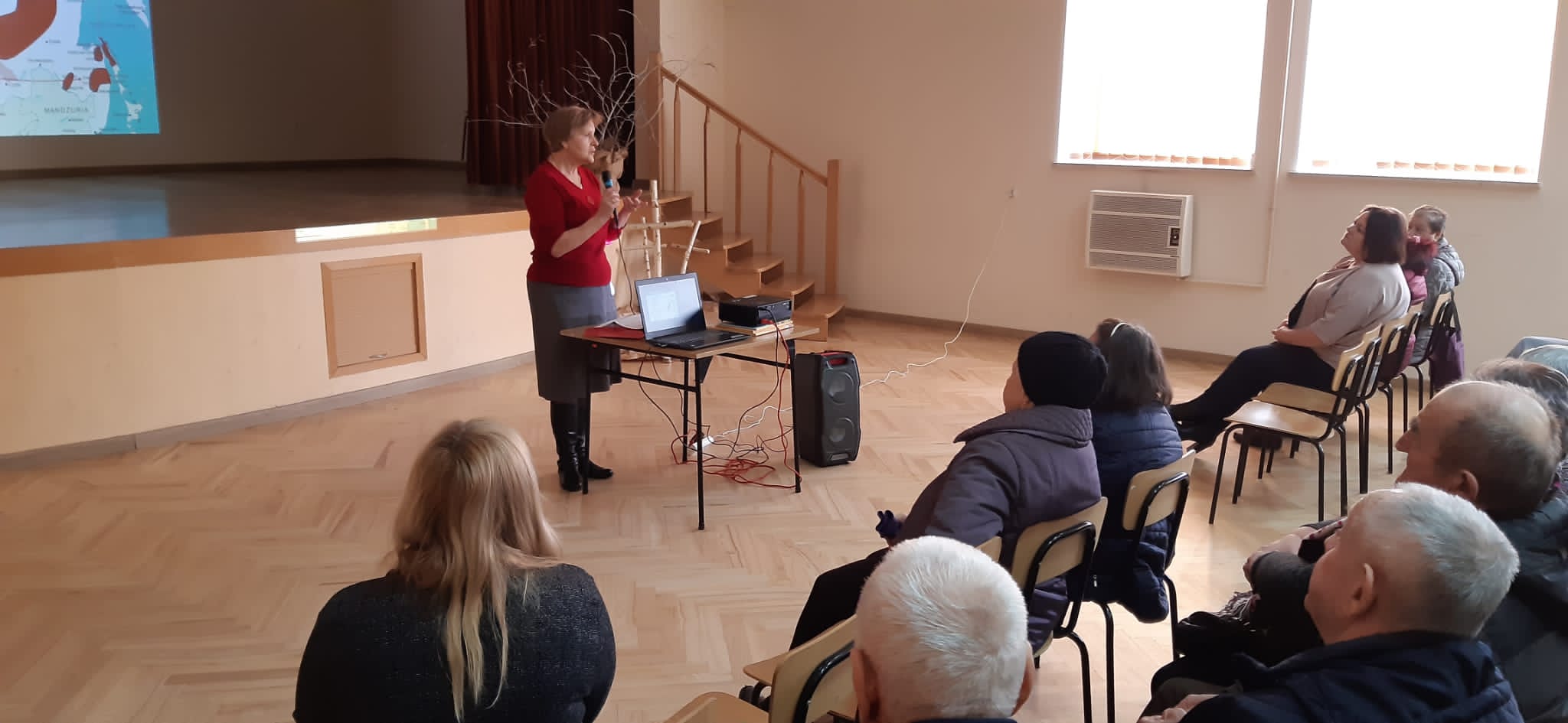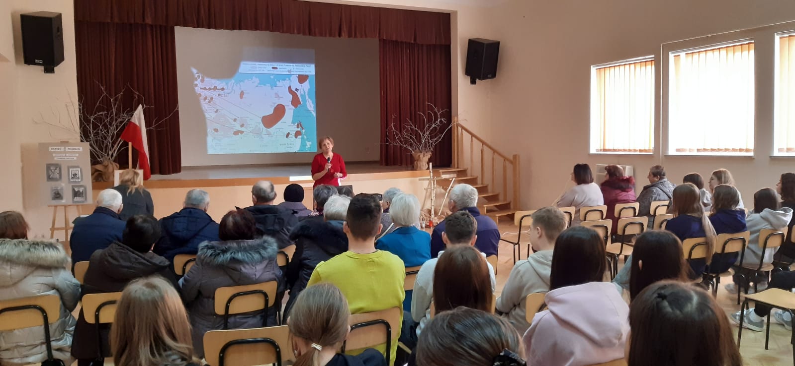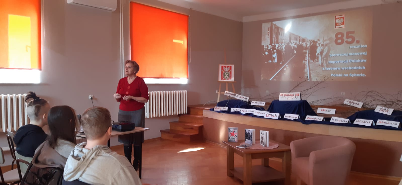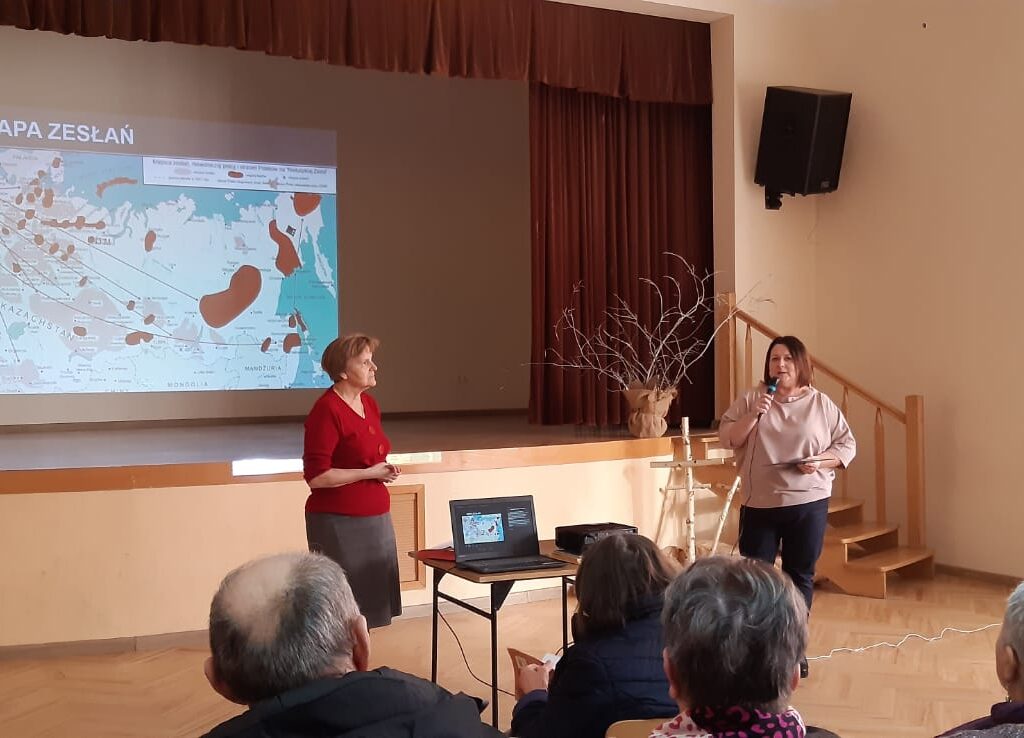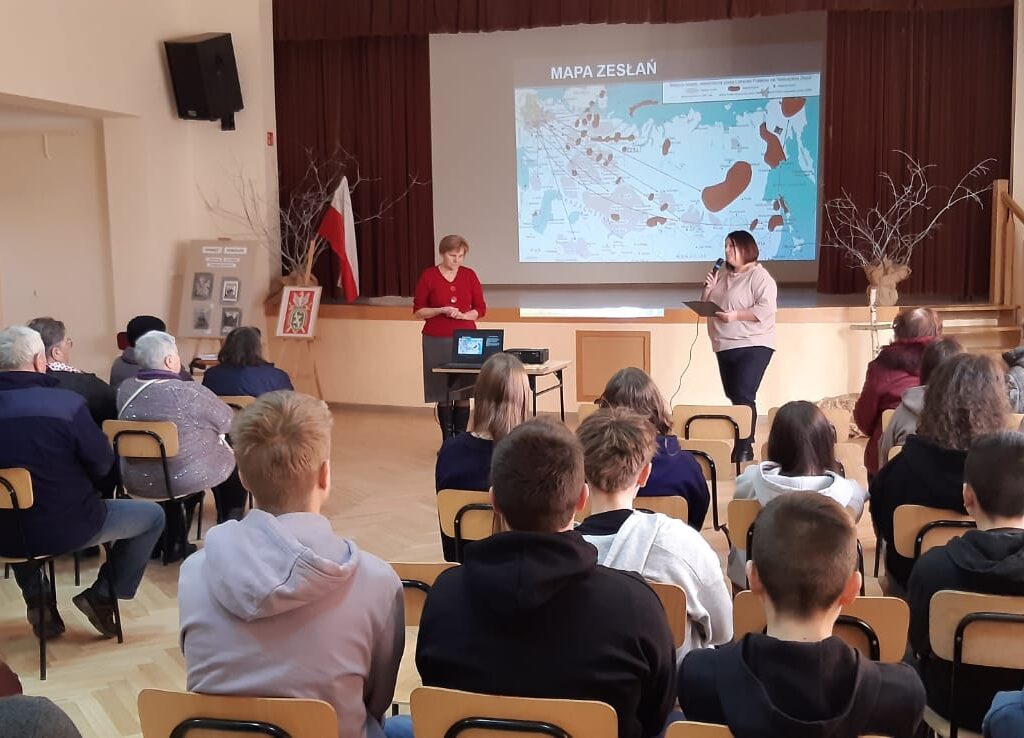 Gośćmi wydarzenia były Barbara Janczura – córka Sybiraków i wnuczka żołnierza Armii Andersa, Wojciecha Mielnika – oraz Teresa Mielnik, która jako 6-letnia dziewczynka doświadczyła wywózki na Sybir. W spotkaniu wzięła udział młodzież szkolna wraz z nauczycielami oraz członkowie Klubu Seniora. Wszyscy z ogromną uwagą wysłuchali opowieści Pani Barbary, która przybliżyła losy swojej rodziny – prawdziwych patriotów, którzy pomimo cierpień i tęsknoty, nigdy nie stracili nadziei na powrót do Ojczyzny. To właśnie z potrzeby serca Pani Barbara postanowiła spisać wspomnienia i wiersze upamiętniające te bolesne doświadczenia. Wśród jej publikacji znajdują się m.in.: Ponury Cień Syberii, Cierniowym szlakiem, Z piekła Kołymy do Armii Andersa, Sybiracy, Zobowiązanie. Wszystkie te pozycje dostępne są w gminnych bibliotekach.