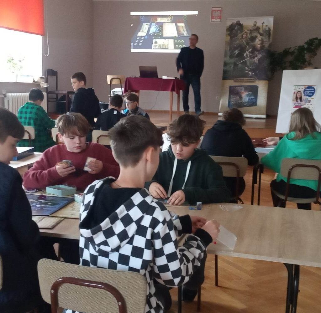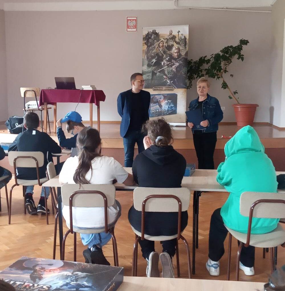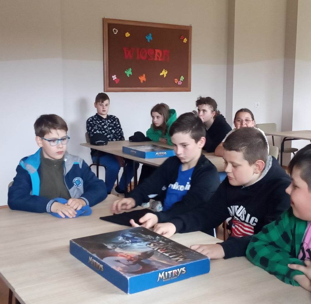 W drugiej części spotkania młodzi czytelnicy mieli możliwość rozegrać w zespołach emocjonujący turniej gry planszowej Mitrys.