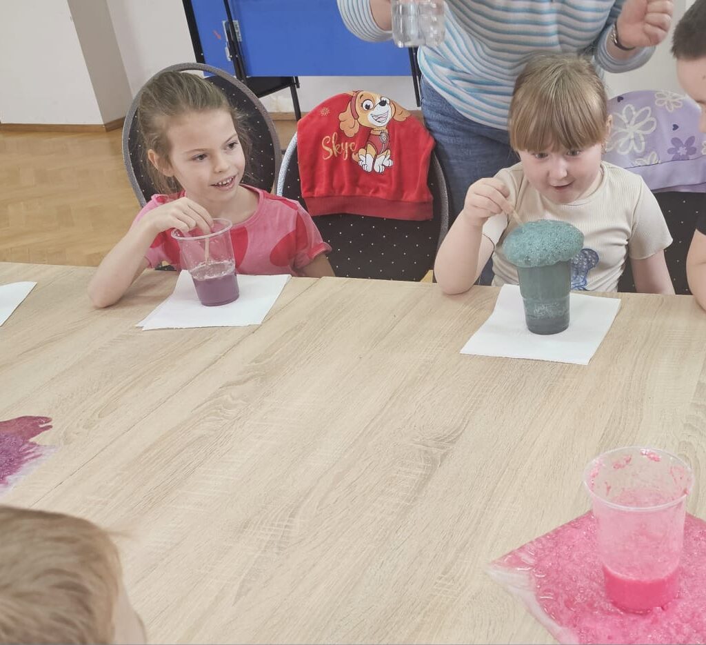 Dodatkową atrakcją były wyjazdy do kina, na basen oraz do sal zabaw, a także zajęcia z robotyki i eksperymentów przyrodniczych, które rozwijały ciekawość świata i kreatywność najmłodszych.