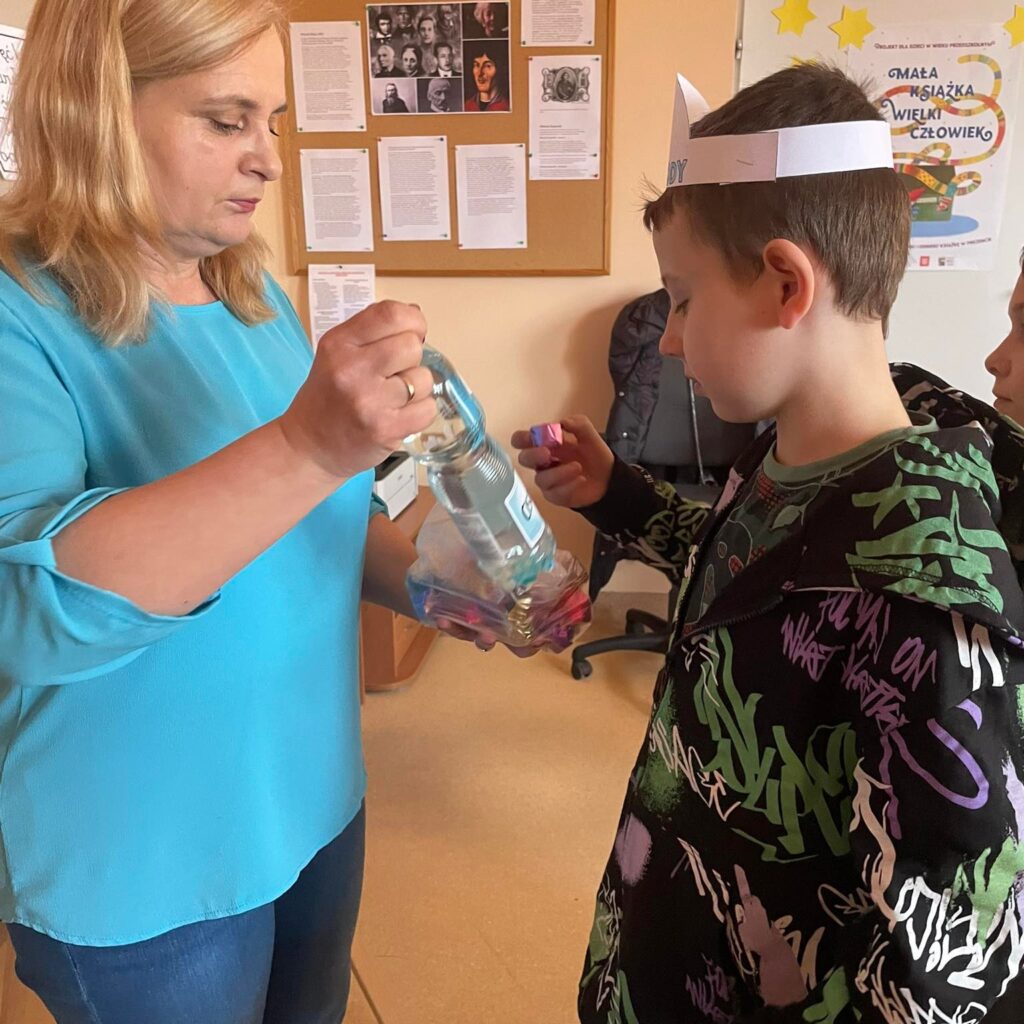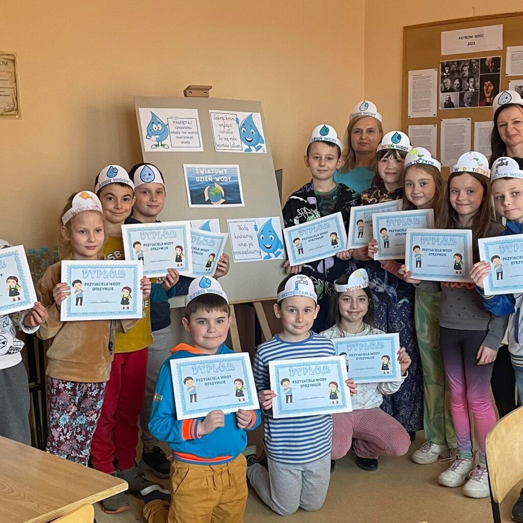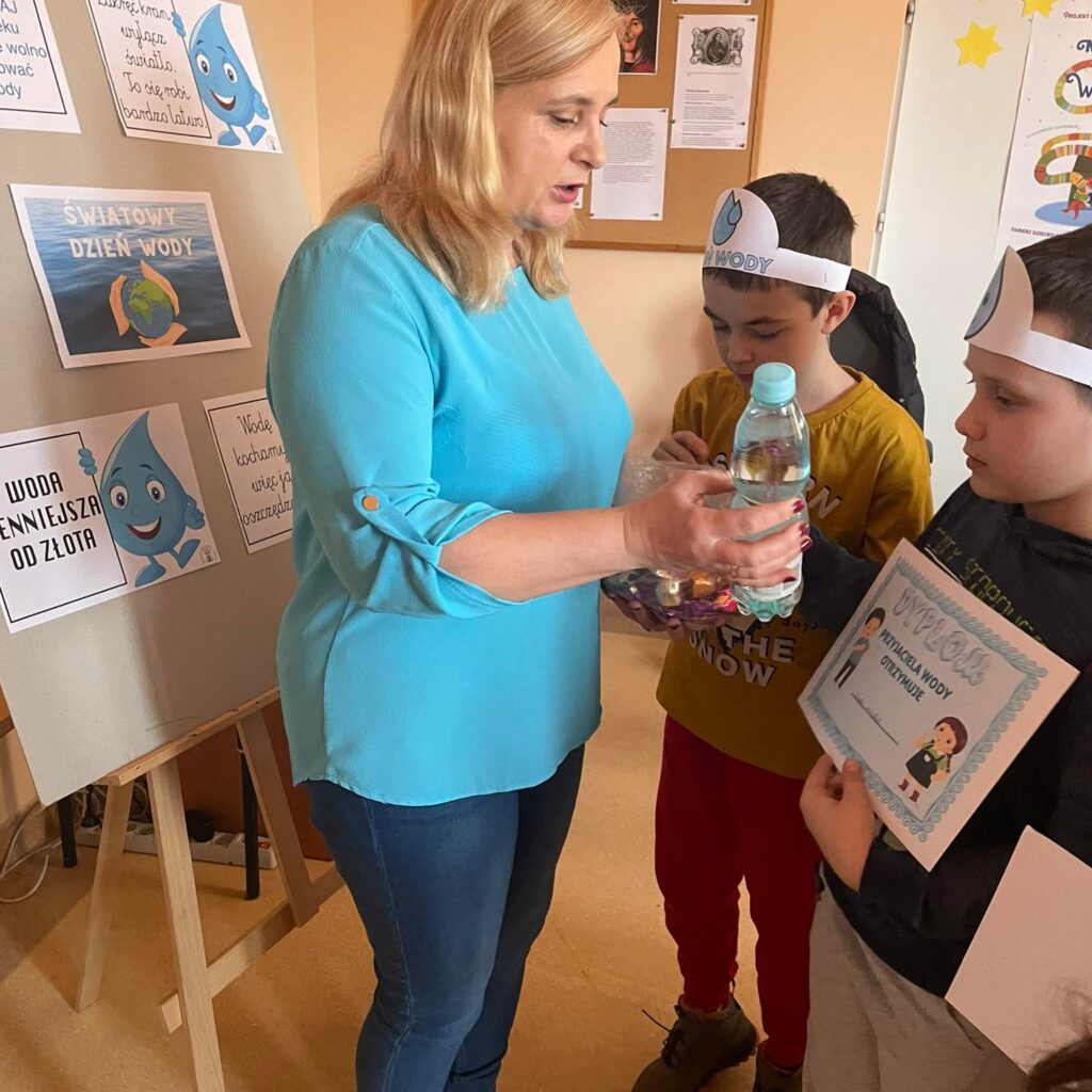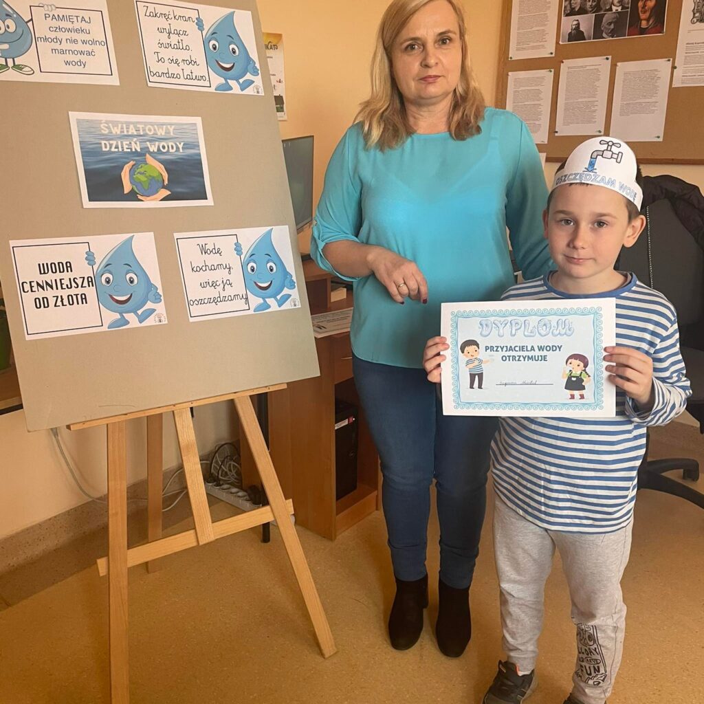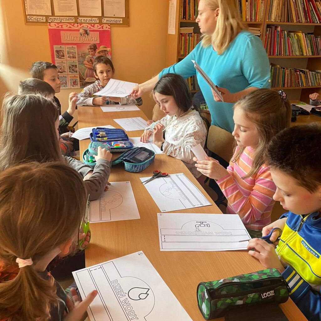 Z tej okazji w bibliotece w Lisich Jamach odbyły się zajęcia edukacyjne połączone że świetną zabawę, poprzez którą uczniowie klasy II Zespołu Szkolno-Przedszkolnego w Lisich Jamach dowiedzieli się jakie znaczenie dla przyrody ma woda. Poznały wiele informacji oraz sposobów wykorzystania wody, dowiedziały się w jaki sposób podczas codziennych czynności oszczędzać wodę, gdyż są na świecie regiony świata w których jej brakuje. Wykonały samodzielnie opaski z hasłem „Oszczędzam Wodę”. Na zakończenie zajęć każdy otrzymał „Dyplom Przyjaciela Wody”