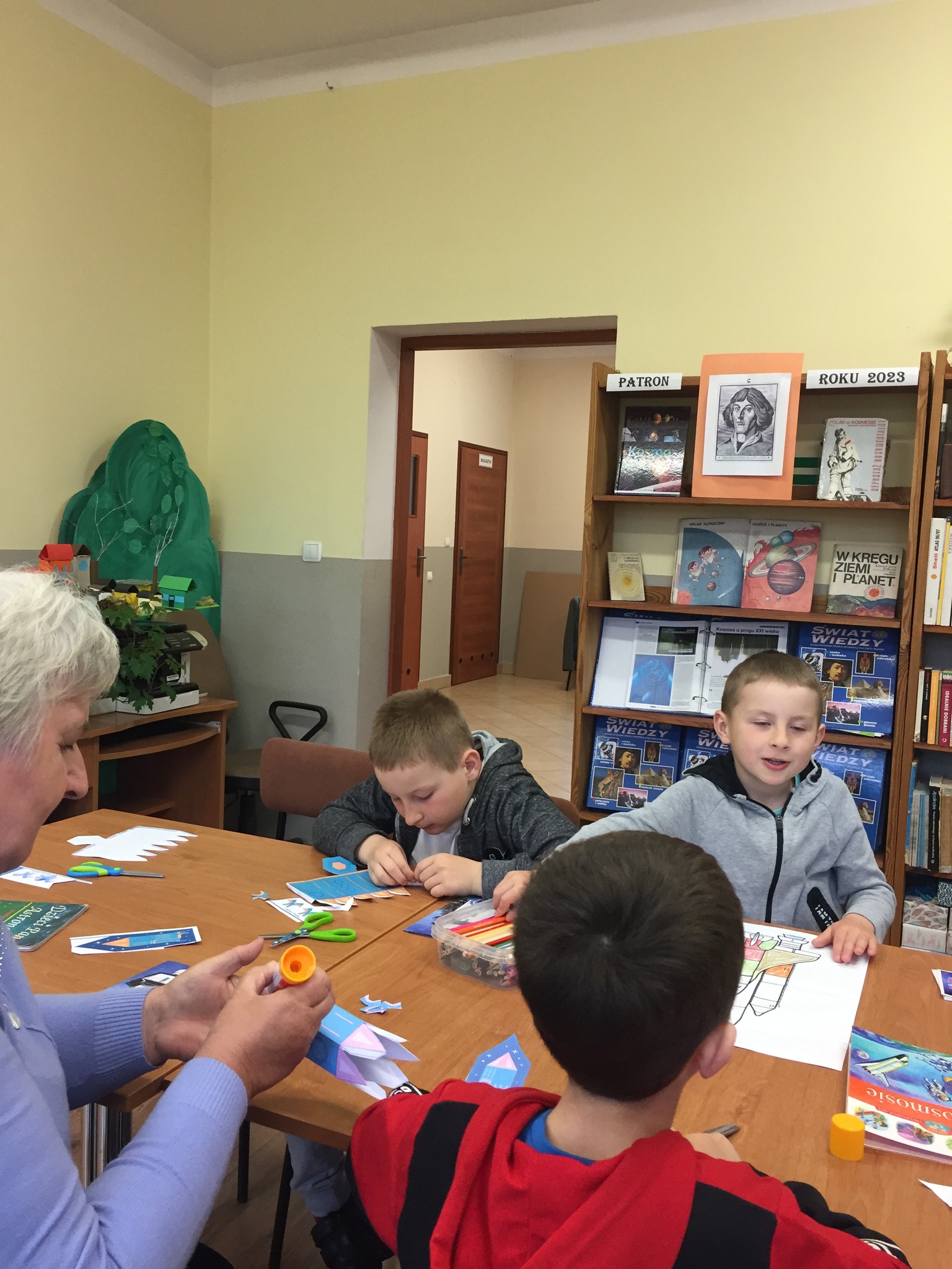 Zauroczone tematem i zachęcone do czytania książek o kosmosie, skorzystały po warsztatach z wypożyczalni. Dziękując wszystkim dzieciom przybyłym na zajęcia, jednocześnie życzę im aby ich dziecięce marzenia spełniły się w przyszłości.