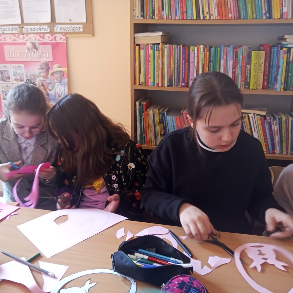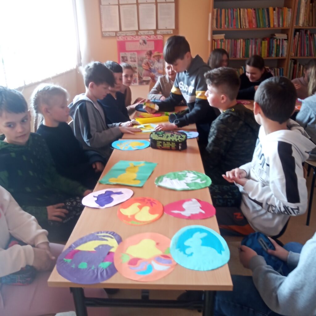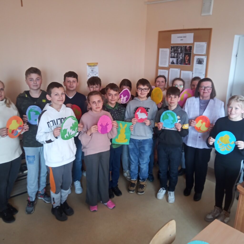 O tym rozmawiali uczniowie kl. IV Zespołu Szkolno-Przedszkolnego w Lisich Jamach z Panią Janiną Łepcio- seniorką, emerytowaną nauczycielka języka polskiego, która przypomniała dawne tradycje i zwyczaje związane ze Świętami Wielkiej Nocy. Druga część spotkania była poświęcona zajęciom manualnym – dzieci wykonały samodzielnie piękne wielkanocne witraże.