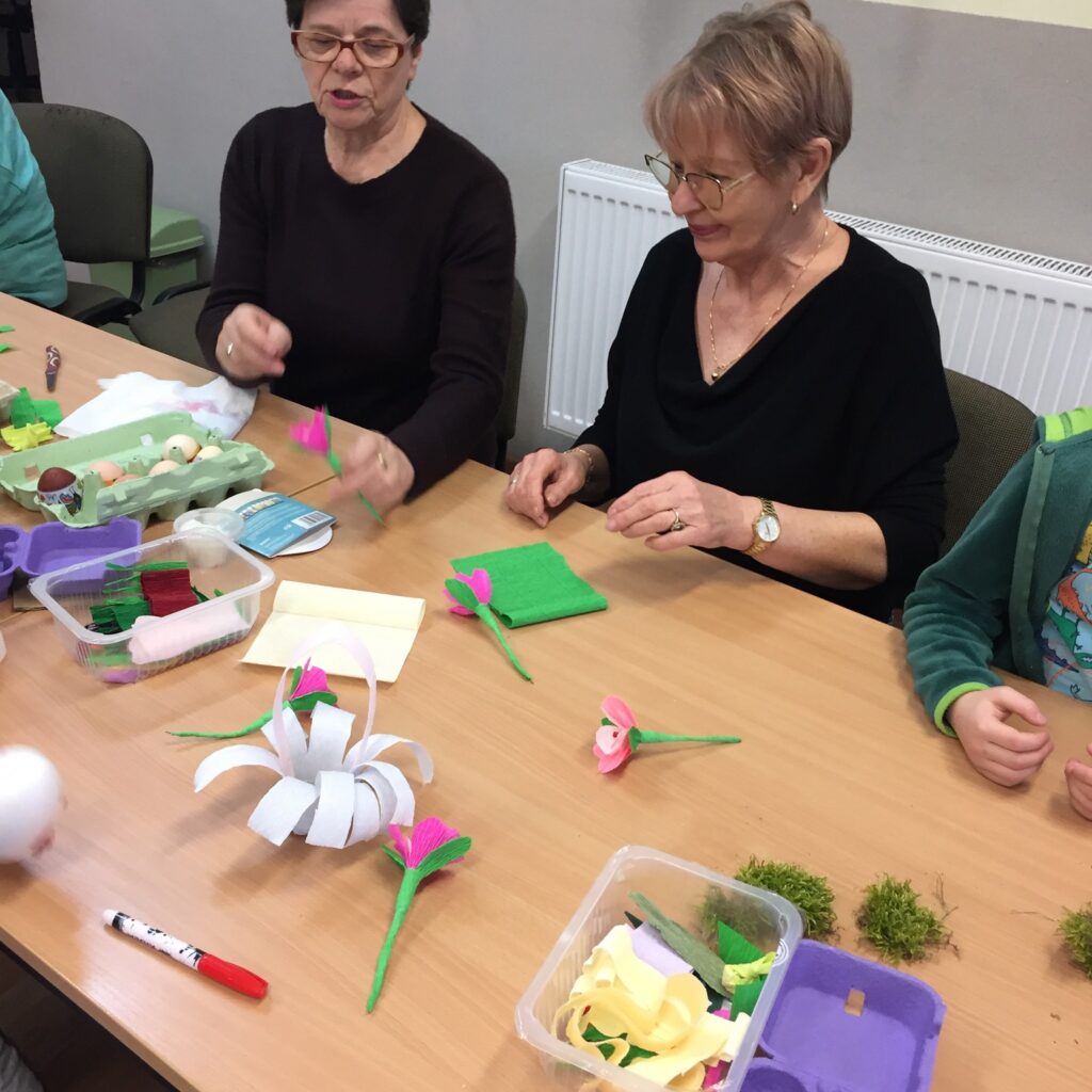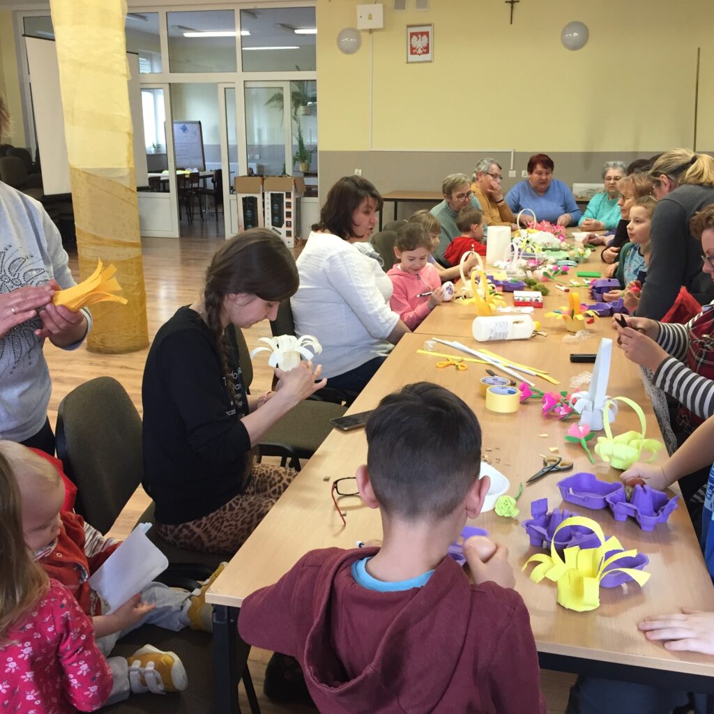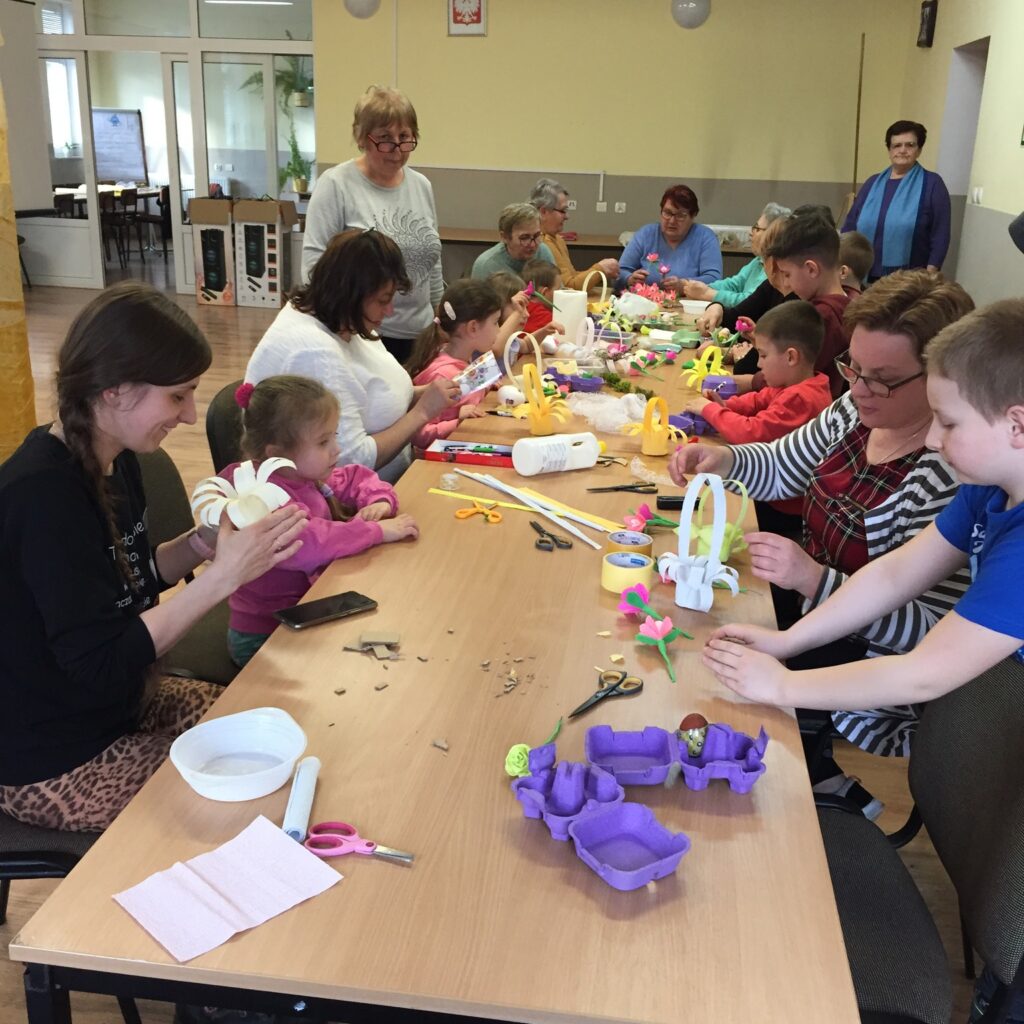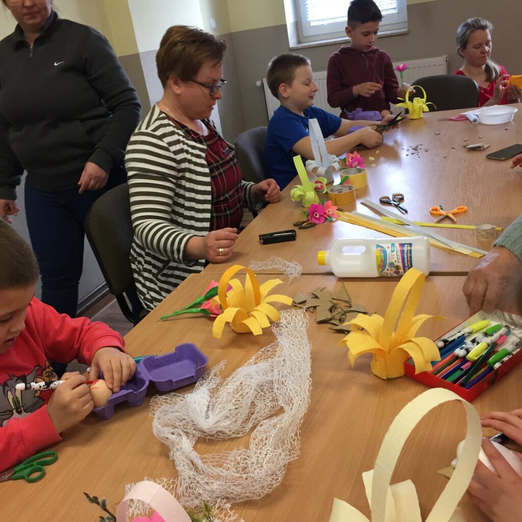 Możliwość własnoręcznego wykonania atrakcyjnego koszyczka była dla najmłodszych źródłem ogromnej satysfakcji. Dzieci dowiedziały się również jak łączyć ze sobą różne materiały i ozdoby. Warsztaty wielkanocne to znakomita okazja do pokazania najmłodszym jak ważne są przygotowania do świąt Wielkiej Nocy, dlaczego należy zadbać o odpowiednią oprawę i atmosferę