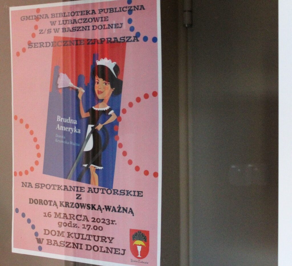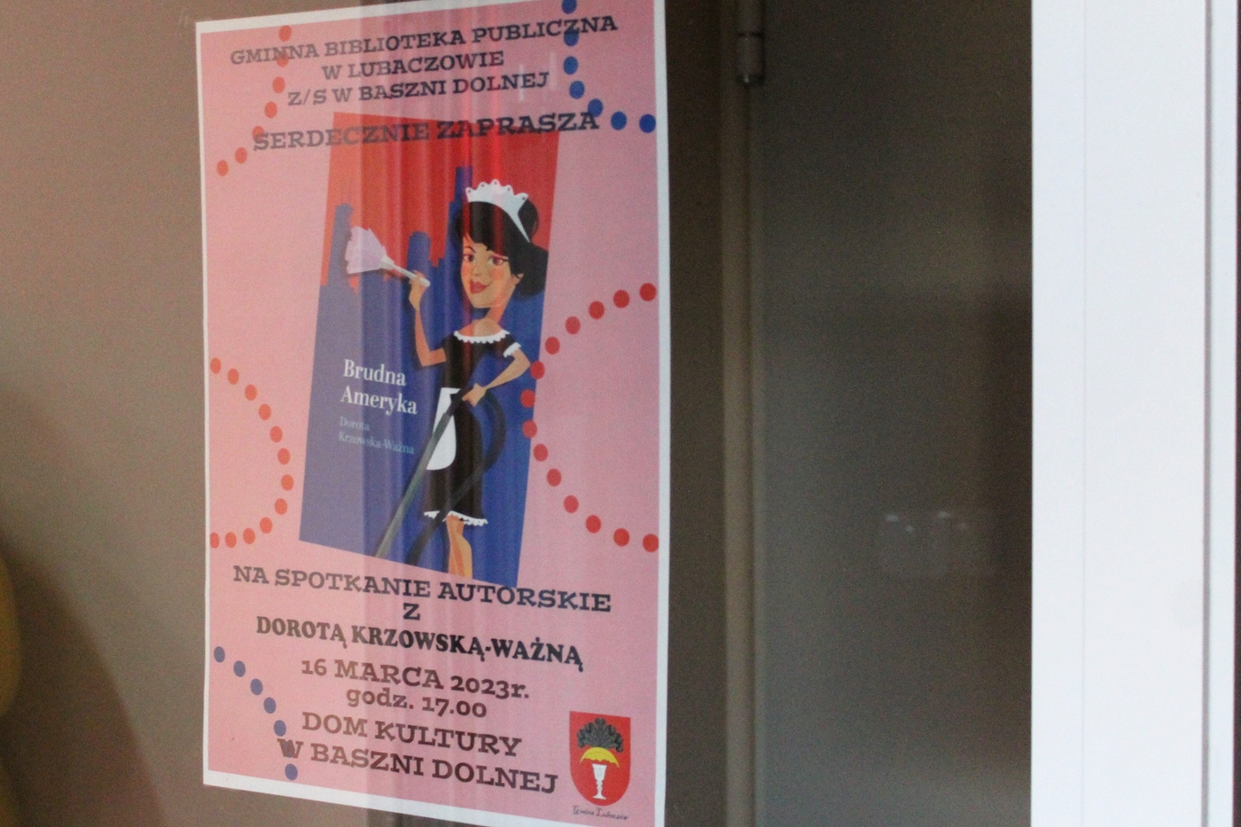 Dorota Krzowska-Ważna była gościem Gminnej Biblioteki Publicznej w Baszni Dolnej. Autorka „Brudnej Ameryki” podczas czwartkowego (16.03) spotkania z czytelnikami mówiła m.in. o swoich doświadczeniach z pobytu w Stanach Zjednoczonych i kulisach powstania jej książki.